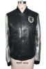 Usa style women pu leather baseball uniform body black pu sleeves silver pu ladies jacket