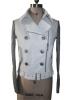 Professional women motorcycle white pu leather jacket body white pu sleeves grey pu ladies coat