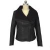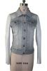 Best quality simple design women jeans demin jacket with white pu sleeves ladies biker jacket