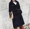 Women long fur coat winter sheepskin long coat blue shearling thick lamb wool costume with waistband