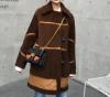 Women shearling lamb wool coat dark brown double-breasted design fur long coat shorn sheepskin